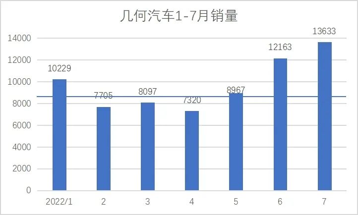 BEV迅速增长的原因主要来自几个方面,一是几何汽车从去年到今年有多辆改款/新款车型上市,目前已有几何A Pro、几何C、几何E、EX3功夫牛四辆产品在售,虽然与其兄弟产品帝豪、远景有着千丝万缕的关系,但也架不住品牌整体售价较低,1-7月中也有三个月销量破万。