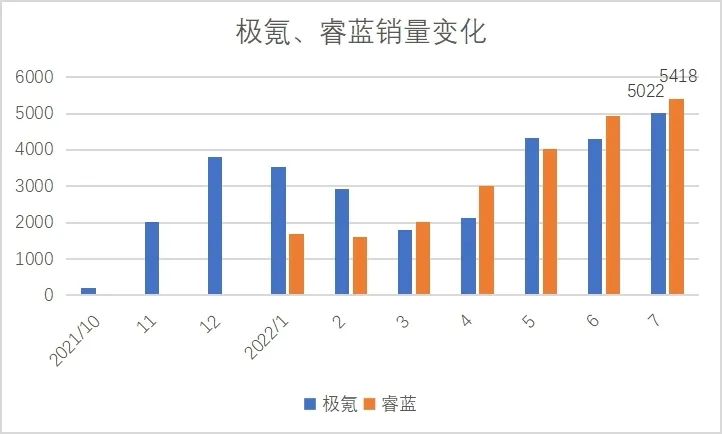 在最新的7月销量数据中,两个新品牌也均已突破月销5000辆的门槛。