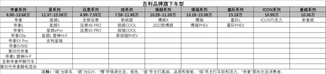 在转型期间,除了短期盈利被迫放缓,对于吉利汽车这类产品类型、品牌数量都较为丰富的传统车企来讲,多种技术路线并行、新旧产品周期重叠导致产品线较为混乱,也是“尴尬期”的问题之一。