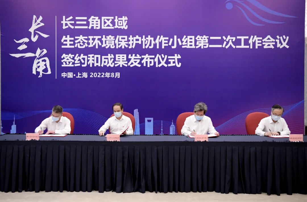 会前,三省一市生态环境部门共同成立长三角区域生态环境宣传教育联盟,分别签署了《环杭州湾地区石化化工挥发性有机物协同治理“三统一”工作备忘录》《苏皖共同建立“2+12”大气污染联防联控机制工作备忘录》《长江口—杭州湾近岸海域生态环境保护合作协议》《加强长三角生态绿色一体化发展示范区饮用水水源地生态环境保护联防联控工作备忘录》,还共同发布了长三角生态绿色一体化示范区生态环境第三方治理服务平台。