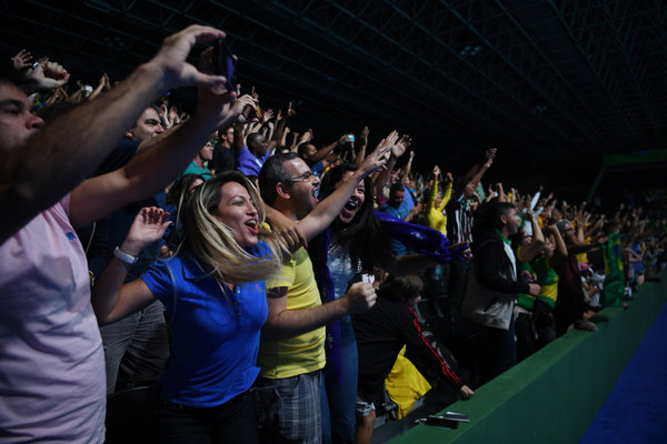 巴西乒乓球队的新闻发言人亚历山大·阿劳约拍着胸口解释说,观众们是“带着一颗足球的心”来看乒乓比赛的。
