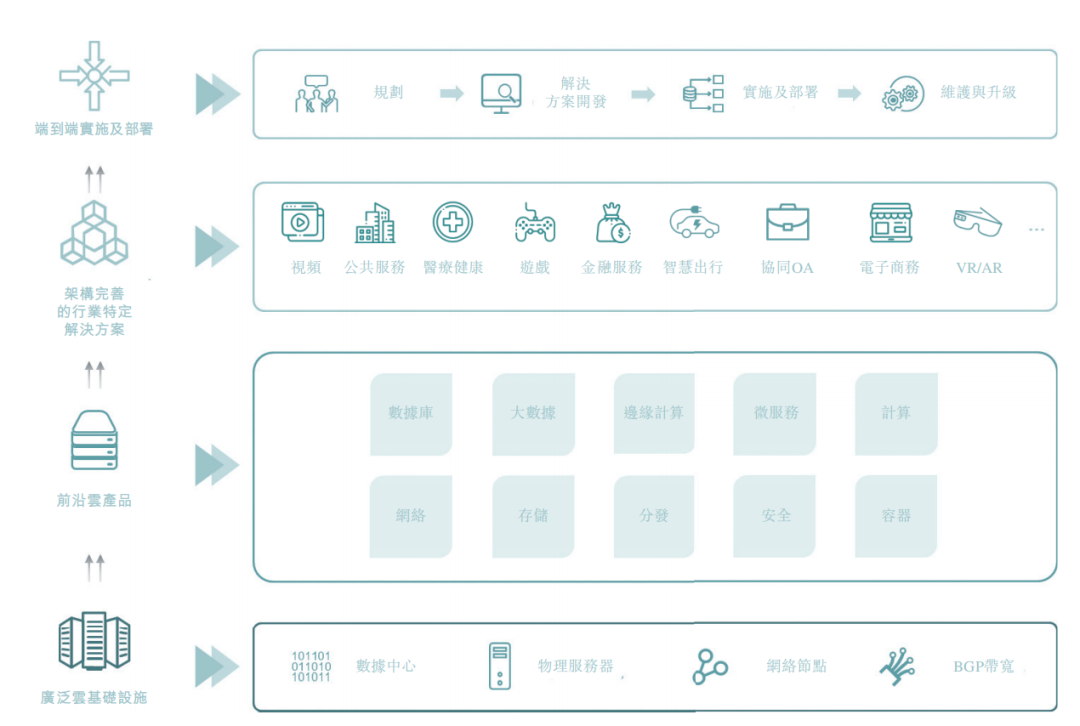 当上云的驱动力逐步转向产业数字化,头部厂商往往会基于自身的生态建设与IDC资源差异,在细分领域构建不同的能力圈,去满足不同行业的差异化需求。
