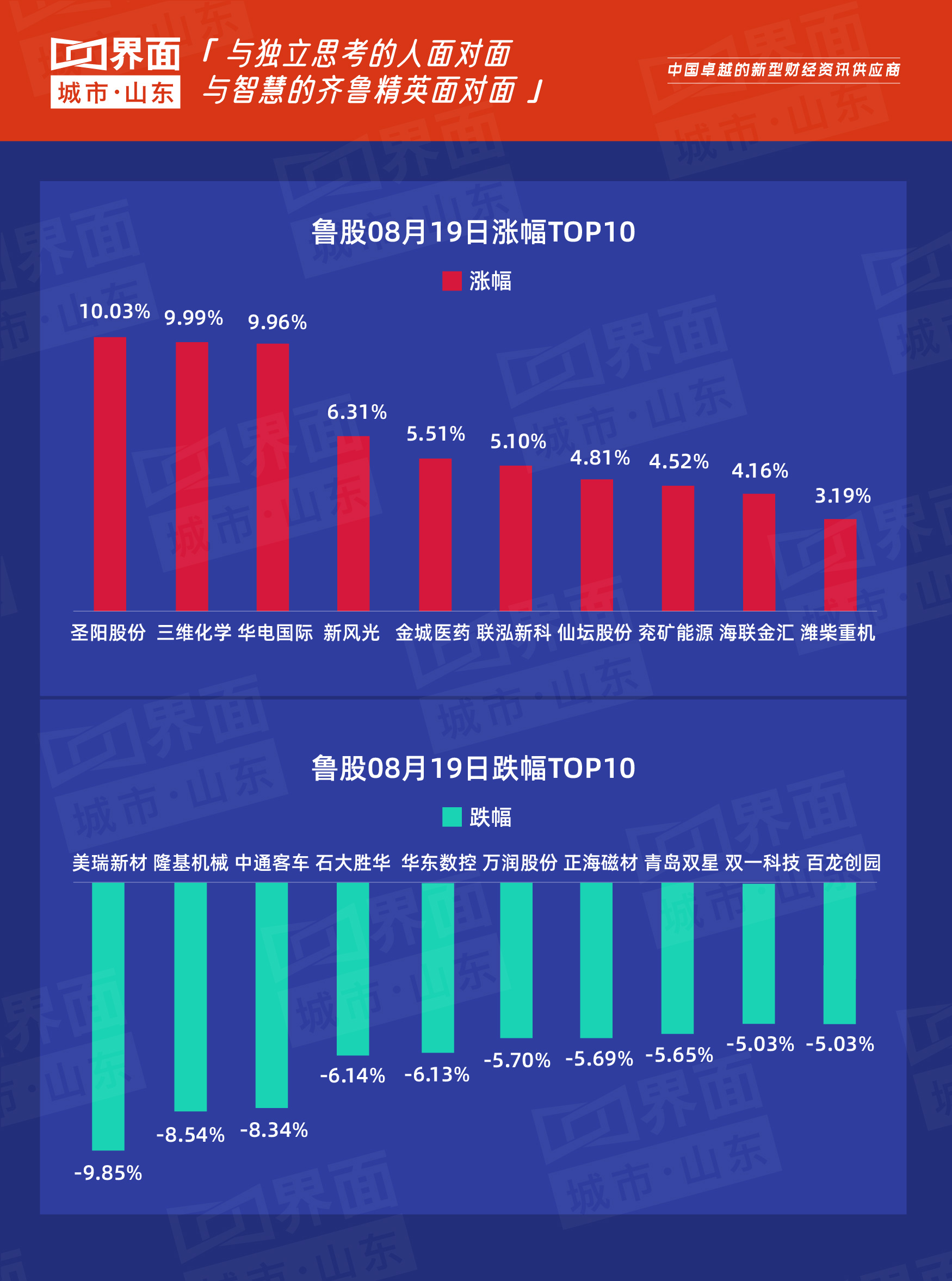 8月19日,山东63只个股上涨,202只个股下跌。