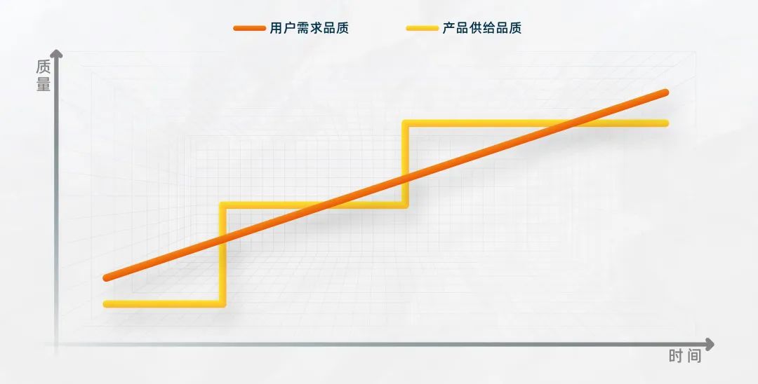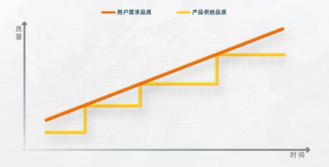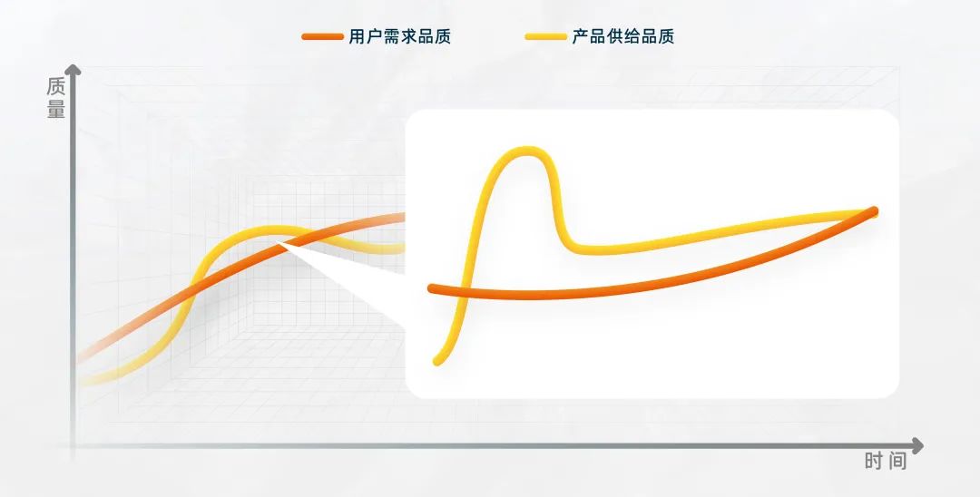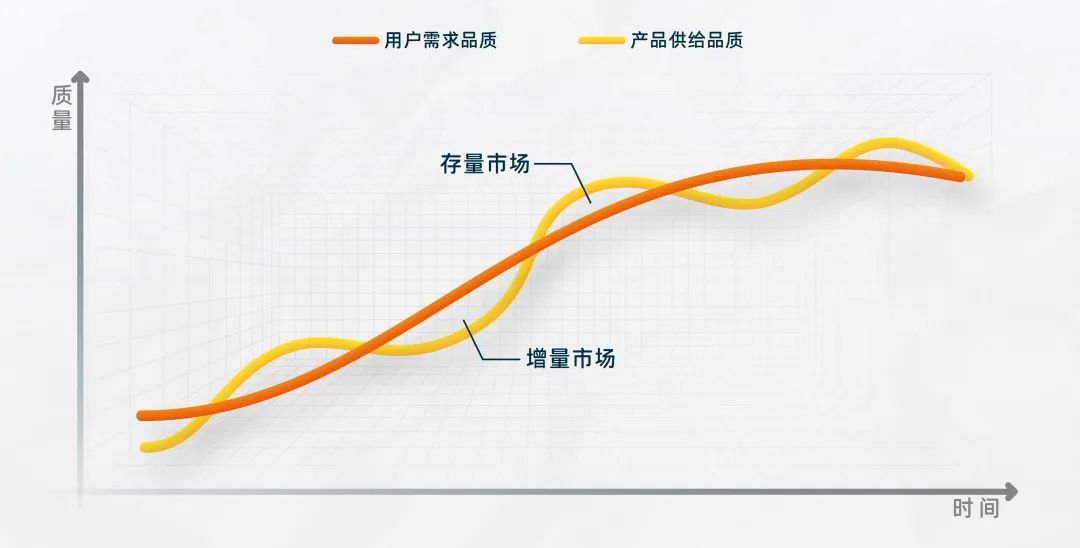 当然,由于生产端、品牌端需要实现商业上的规模优势,敏捷度较差,因此需要提前进行生产投资,再加上外部资本的助推,因此产品供给的品质会超越平均用户需求。如下图所示: