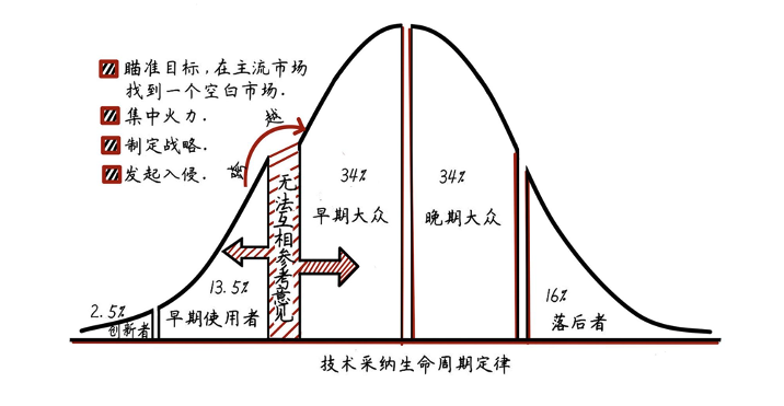 尽管《跨越鸿沟》描述的是技术采纳和破圈,但笔者认为其在消费领域,尤其是小众消费走向大众消费时,依旧有借鉴价值。