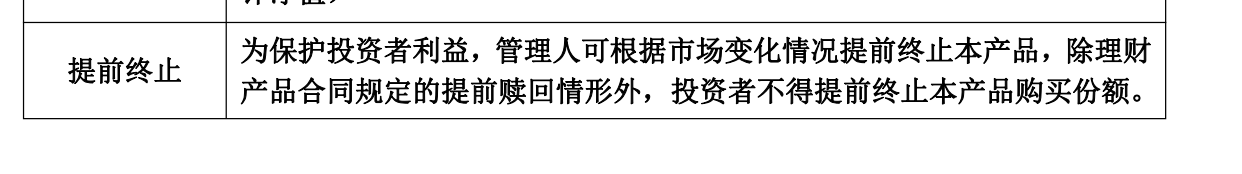 银行及理财公司单方面宣布产品终止运行,是否符合监管规定及合同约定?界面新闻记者注意到,多数理财产品说明书中专门设置了“提前终止”这一条款。例如某养老理财产品说明书中明确表示,“为保护投资者利益,管理人可根据市场变化情况提前终止本产品,除理财产品合同规定的提前赎回情形外,投资者不得提前终止本产品购买份额。”
