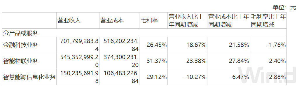 半年报数据可以发现,润和软件的主攻点还是聚焦在金融科技和智能物联业务上。具体细分业绩方面,金融科技业务营业收入7.02亿元,较上年同期增长18.67%;智能物联业务营业收入5.45亿元,较上年同期增长23.38%;智慧能源信息化业务和智能供应链信息化业务业绩则较去年同期下滑,分别实现1.5亿元以及3,192.86万元收入,下滑10.27%和36.47%。