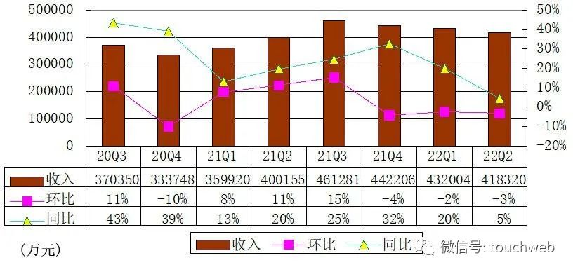 360数科2022年第二季度平台服务收入为12.354亿元(约1.84亿美元),上年同期的营收为16亿元,上一季度为14亿元。