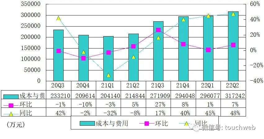 360数科2022年第二季度成本与费用为31.72亿元(约4.74亿美元),较上年同期的21.4亿元增长48%。