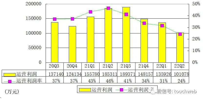 360数科2022年第二季度运营利润为10.1亿元(约1.5亿美元),运营利润率为24.2%;Non-GAAP下运营利润为10.58亿元。
