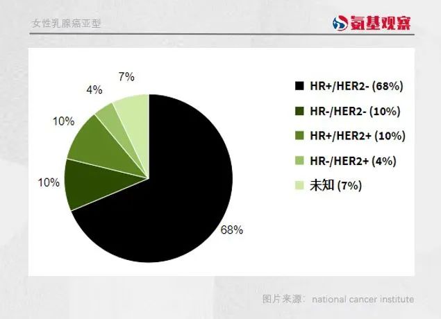 口服SERD备受药企关注也可以理解,毕竟其针对乳腺癌适应症患者规模最为庞大的亚型——HR+/HER2-,达68%。
