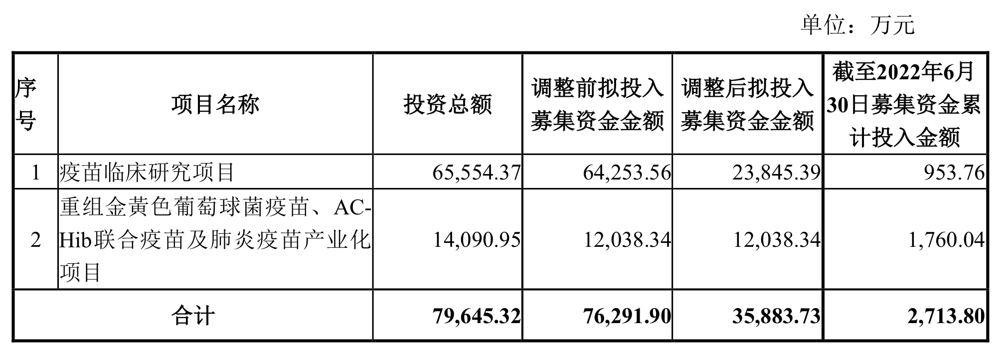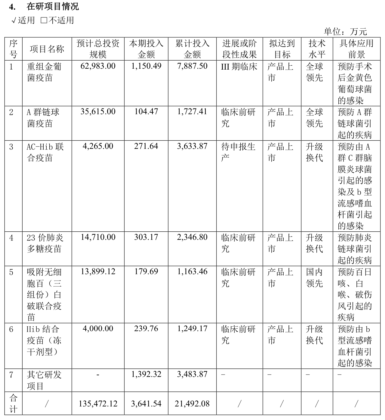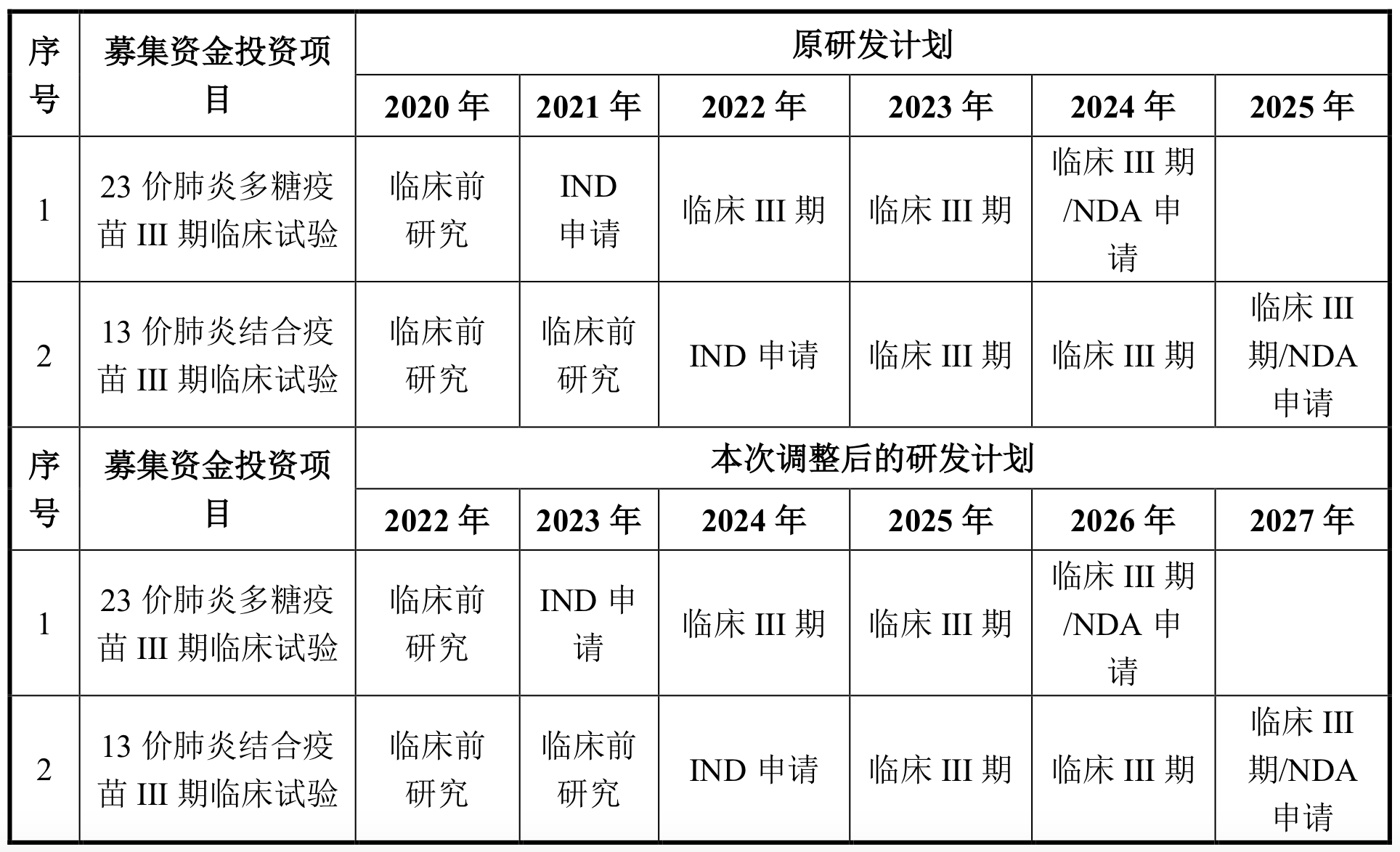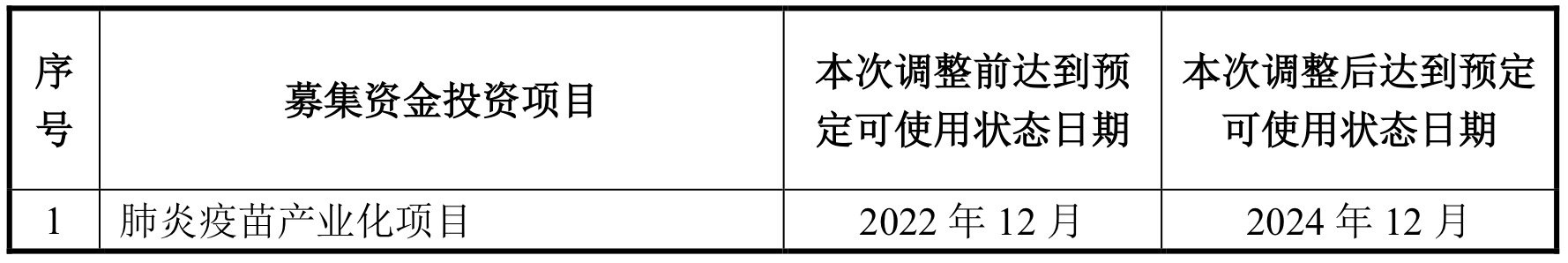 其次是在研项目的推进进度。8月18日公告称,公司通过综合评估,将“疫苗临床研究项目”中23价肺炎多糖疫苗和13价肺炎多糖结合疫苗临床研究项目达到预定可使用状态的时间分别调整至2026年12月和2027年12月;将“重组金黄色葡萄球菌疫苗、AC-Hib联合疫苗及肺炎疫苗产业化项目”中肺炎疫苗产业化项目达到预定可使用状态的时间调整至2024年12月。