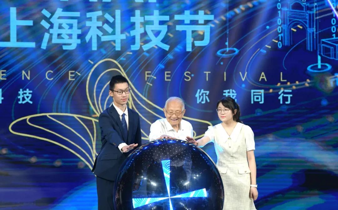 中国科学院院士、同济大学海洋与地球科学学院教授汪品先与“明日科技之星”一等奖选手孙嘉遥、胡程皓共同启动2022年上海科技节。