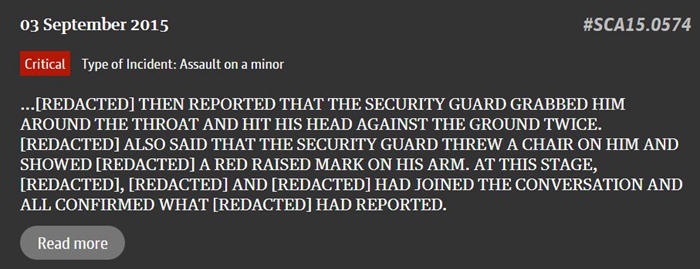 在本周《卫报》公布的2116份报告里,有7份涉及性侵儿童事件;59份关于儿童遭殴打;30份关于儿童自虐事件;还有159份是儿童出现自虐倾向的情况。
