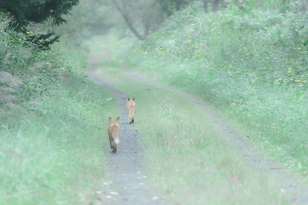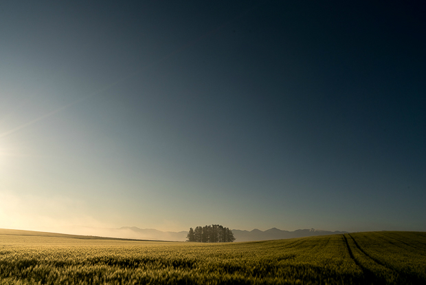 美瑛附近起伏的山丘中生活着大量野生狐狸,不过摄影师也强调,很难真的遇上一只;这也变成了拍摄这一系列作品的一个动力:“就好像只有上帝知道它会在何时出现在何地”。为了捕捉到惊艳的影像,Hiroki频繁进入狐狸的自然栖息地,观察和等待那神奇的一刻。