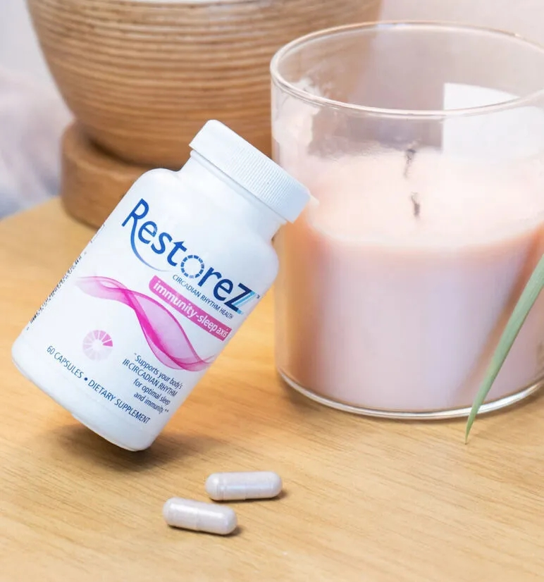 这是一款专注于调节昼夜节律睡眠的补充剂RestoreZ,该配方拥有能够增强身体免疫反应和增强睡眠的成分。