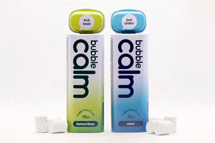 Bubble Calm是一种由薄荷和柠檬酸橙等制成的新型功能性口香糖,旨在帮助人们缓解压力,获得放松与宁静。