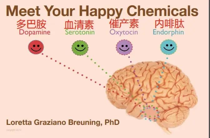 在神经学中,大脑感受到快乐、放松、满足等正能量情绪大多由四种激素掌控:多巴胺、内啡肽、血清素以及催产素。