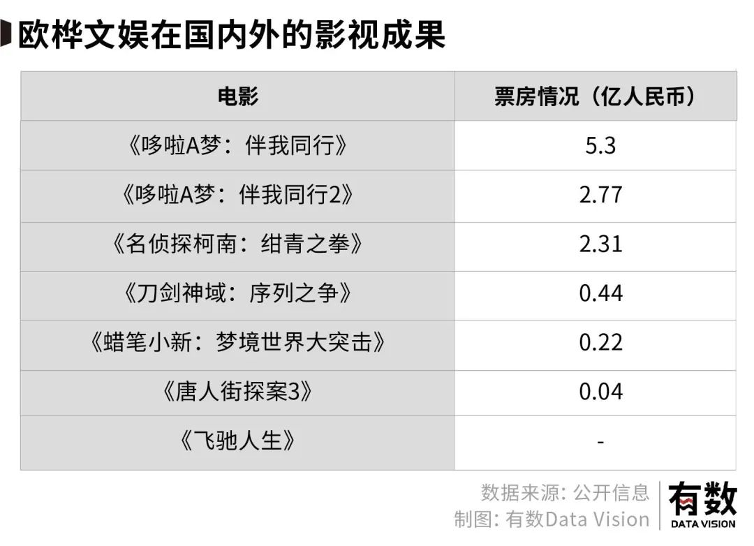 2015年欧桦公司通过海昌公园结识了哆啦A梦的版权方,同年的5月28日,欧桦团队就成功协助大电影《哆啦A梦:伴我同行》在国内院线上映,斩下5.3亿票房,超过日本本土票房。