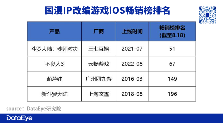 DataEye研究院认为,由于IP成本较高,因此目前国内大部分国漫IP改编游戏,把快速“圈钱”收割当成唯一目标。