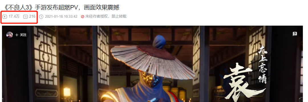 在官方B站渠道视频内容中,项目组侧重对IP内容的展示,反而游戏相关的内容整体不多啊。根据《不良人3》B站官方频道来看,项目组最早于21年1月发布首部手游预告PV,宣布IP手游化。截至目前,该PV取得大约17.4万次点击。整体思路比较常规,突出IP元素和高品质内容向玩家进行展示。