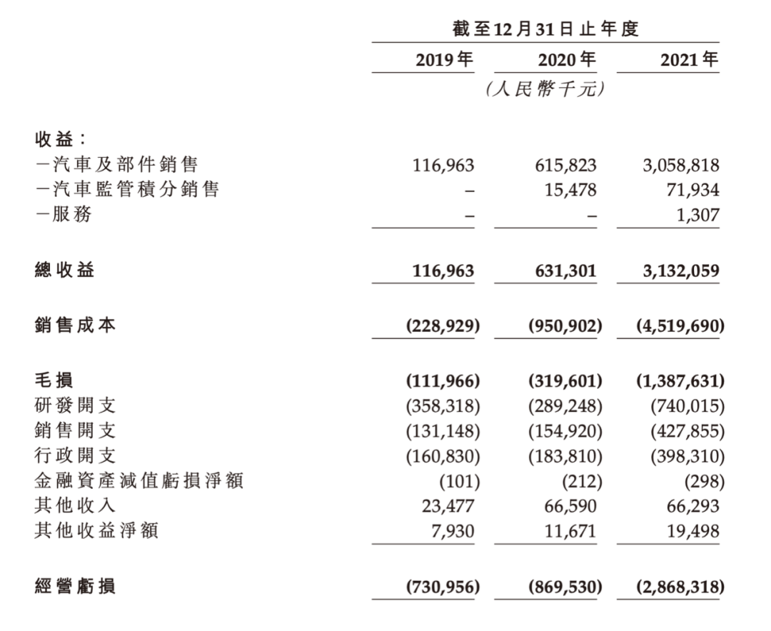 其中,零跑2021年汽车及部件销售为30.59亿元,同比增396.7%,主要源于主力车型交付量增加;汽车监管积分销售收入为7193.4万元;来自服务的收入为130.7万元,系车辆延长质保、车联网服务等汽车相关额外收入。