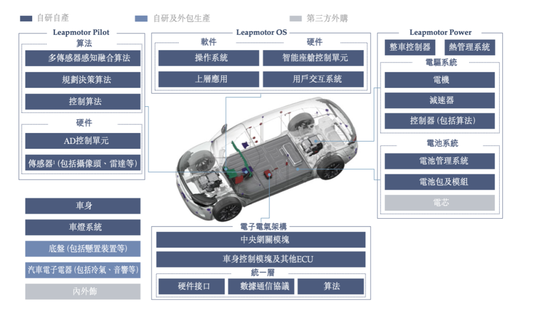 零跑自主研发智能电动汽车核心系统及电子部件中的所有关键软硬件,根据弗若斯特沙利文的资料,该公司是中国目前唯一一家具有全域自主研发能力的新兴电动汽车公司。