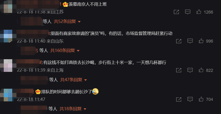 网友评论中,网友对高温下排队几个小时、高价买奶茶的行为表示不能理解。