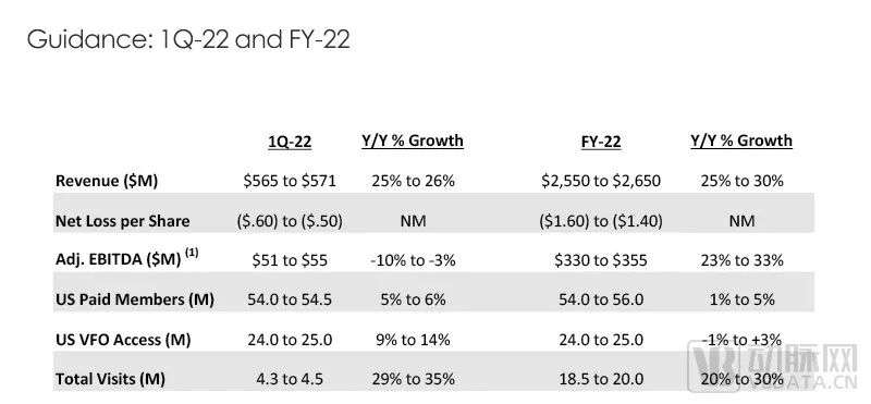 Teladoc在2021年Q4对2022年业绩的预测(截图自Teladoc当季财报预览)