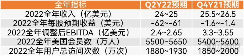 Teladoc在2021年Q4和2022年Q2对2022全年业绩预测的对比