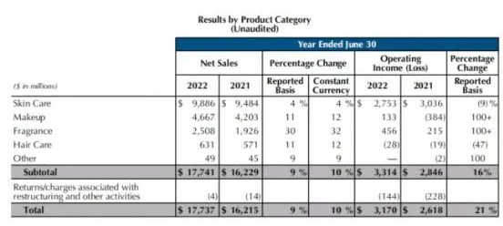 不过,雅诗兰黛品牌护肤线受中国区等地区疫情影响以及在财年第四季度受到公司上海分销设施暂时减产的严重影响,销售额出现下滑,抵消了其他品牌的高额增长,导致本财年护肤品仅取得个位数增长。