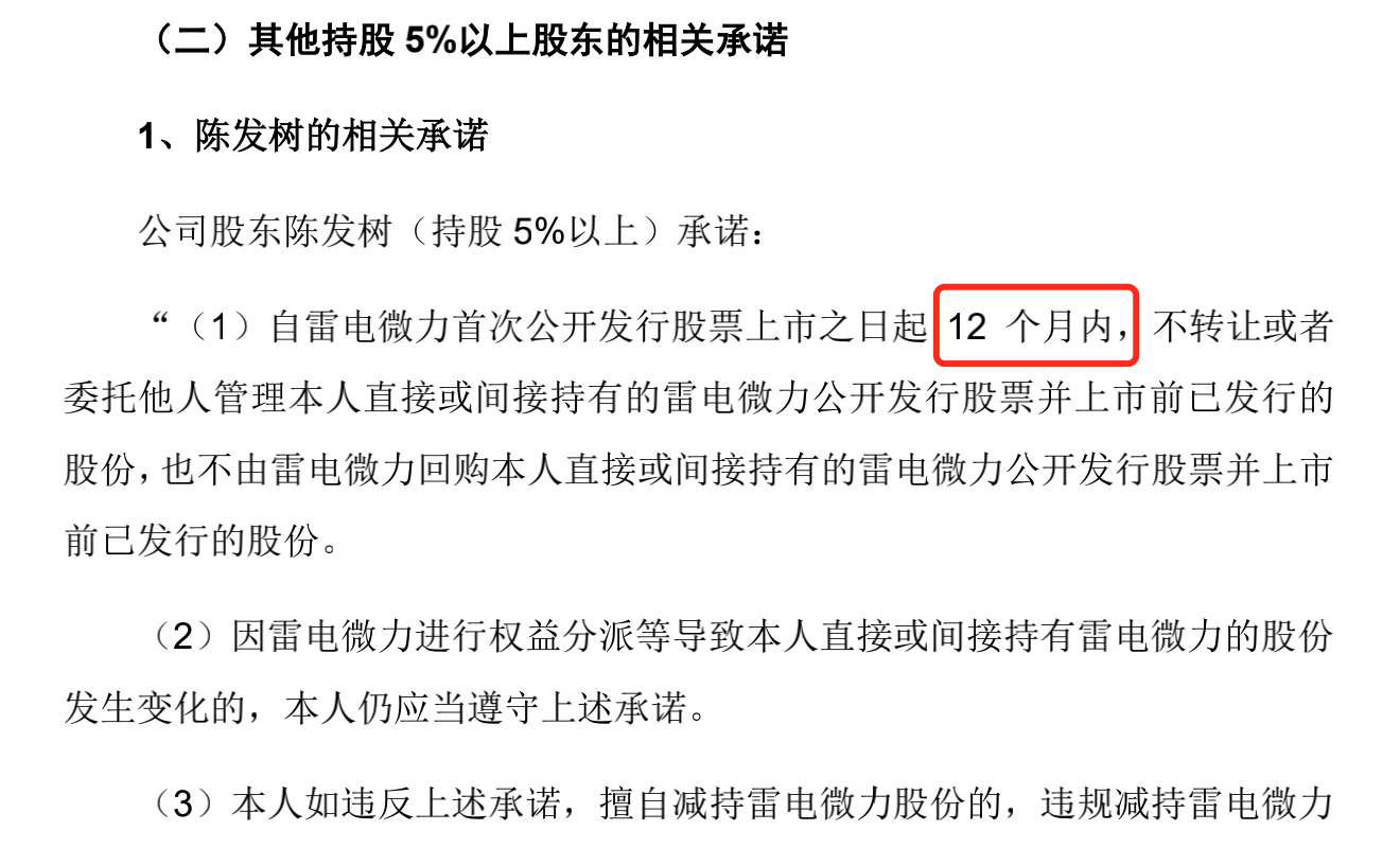 2020年2月,雷电微力整体变更为股份有限公司,陈发树的出资额变更为869.9538万股(净资产折股),持股比例11.98%。