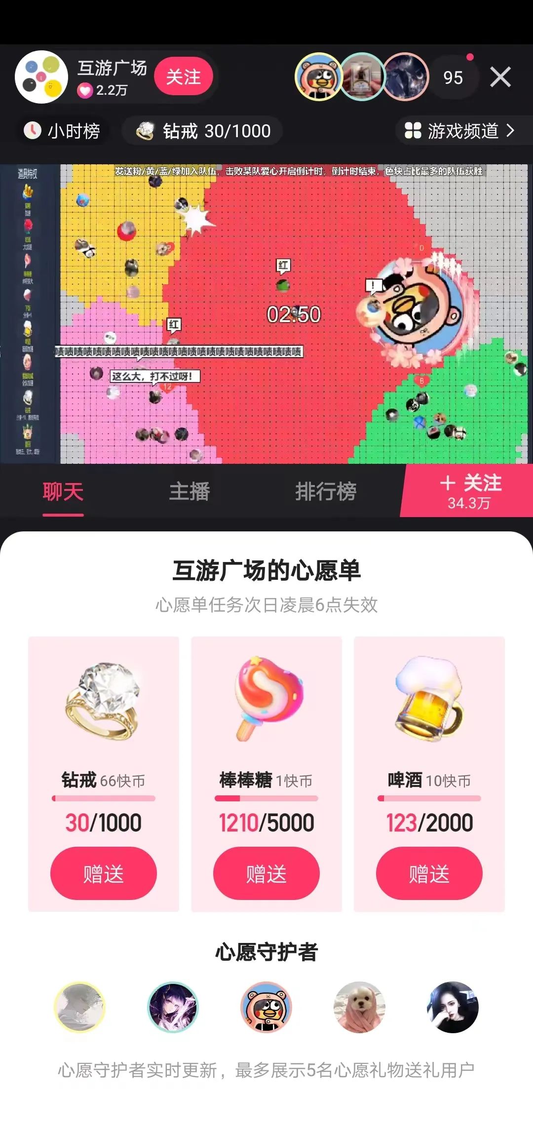 一般而言,直播间所需参与游戏的礼物普遍在10元以下,但由于这类直播对主播的依赖性弱,能够实现多平台、24小时全天候直播,比如@互游广场就在多平台同时开播,其中在快手,尽管非热播时段其同时在线人数不过百人,但其半天内收到的礼物打赏收入就达到400元以上,按此推算,其多平台累计单日收入可达上千元。