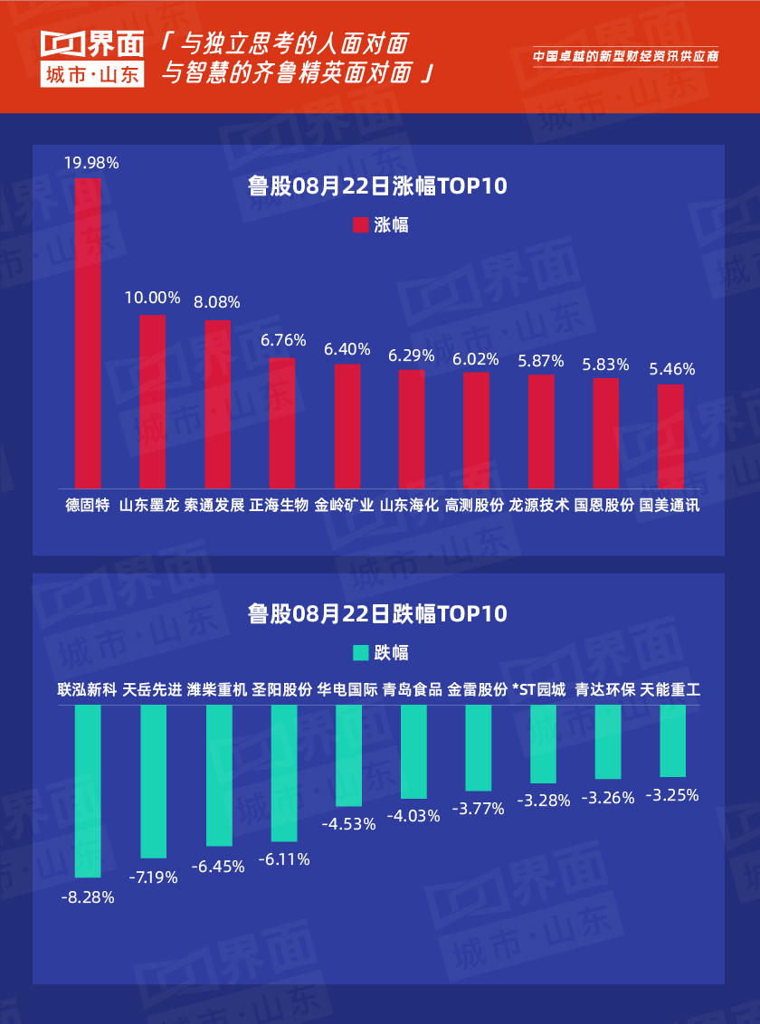 8月22日,山东178只个股上涨,86只个股下跌。