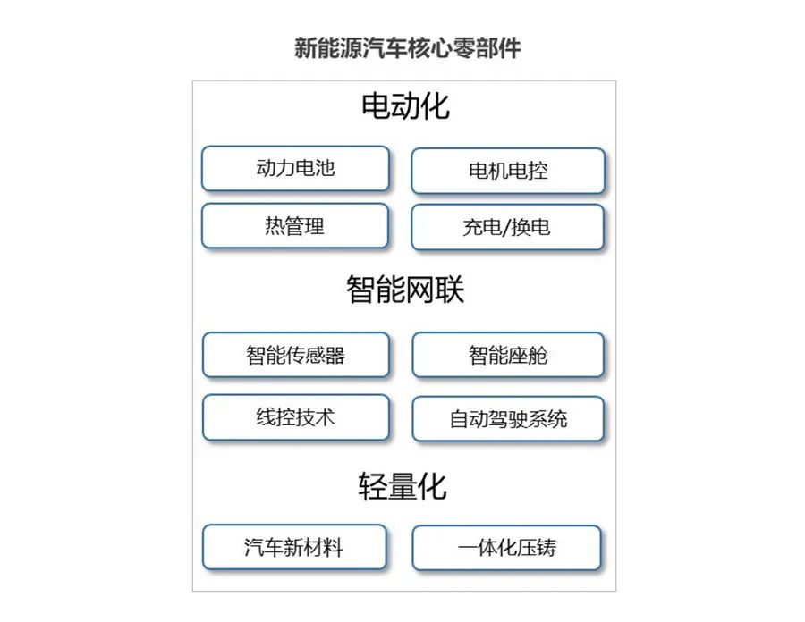 目前新能源汽车已进入自我循环的快速发展阶段,自主品牌的崛起将为中国汽车产业带来新的产业链投资机遇,涉及汽车研发设计、整车制造、“三电”系统、汽车电子、增量零部件和传统部件升级等,其中最主要的还是新能源汽车“四化”技术及相关产品。
