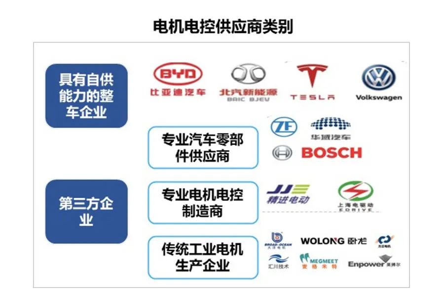 从电机电控技术发展看,专利研发主要集中整车厂商,如比亚迪、上汽集团等。整车企业仍为电机电控市场主体,但整车企业垄断格局呈现弱化,第三方电机电控企业涌入市场,如精进电动、上海电驱动,未来将迎来爆发式发展。国外汽车零部件供应商通过合作抢占市场,例如采埃孚与卧龙电机合作、电产与广汽零部件合作进入电机市场。