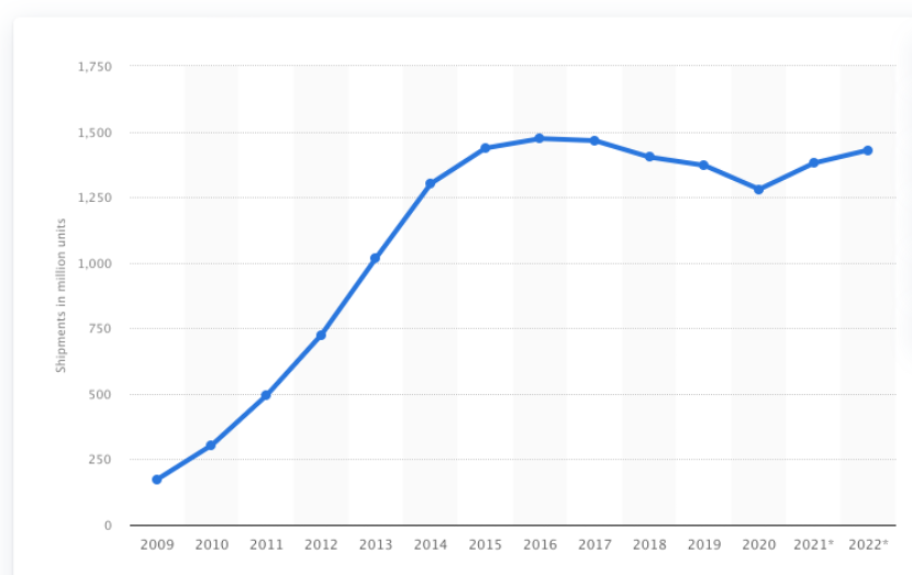 这也就有了过去几年中国智能手机行业的大繁荣,且即便在中国本土市场渗透率达到一定峰值之后仍然通过海外市场分散化处理保持了较高的成长速度。