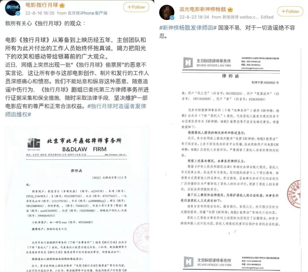 而与此同时,社交平台上更出现了一批喊出“《独行月球》《断·桥》《新神榜·杨戬》等影片偷《明日战记》票房”的言论。
