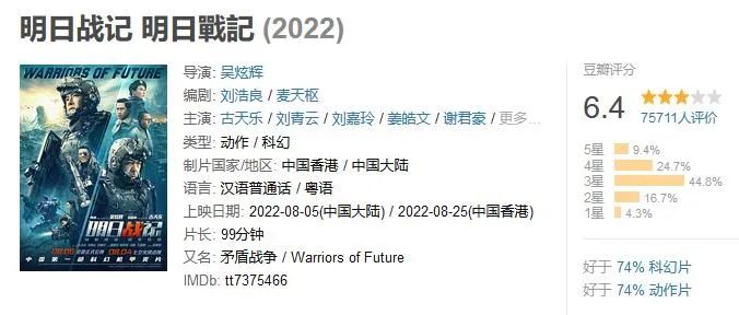 首先是电影品质过关。客观来说,《明日战记》即便不够好,也绝对不在烂片范畴内。豆瓣6.4,猫眼9.1、淘票票8.9的口碑,为其票房逆袭奠定了坚实的内容品质基础。