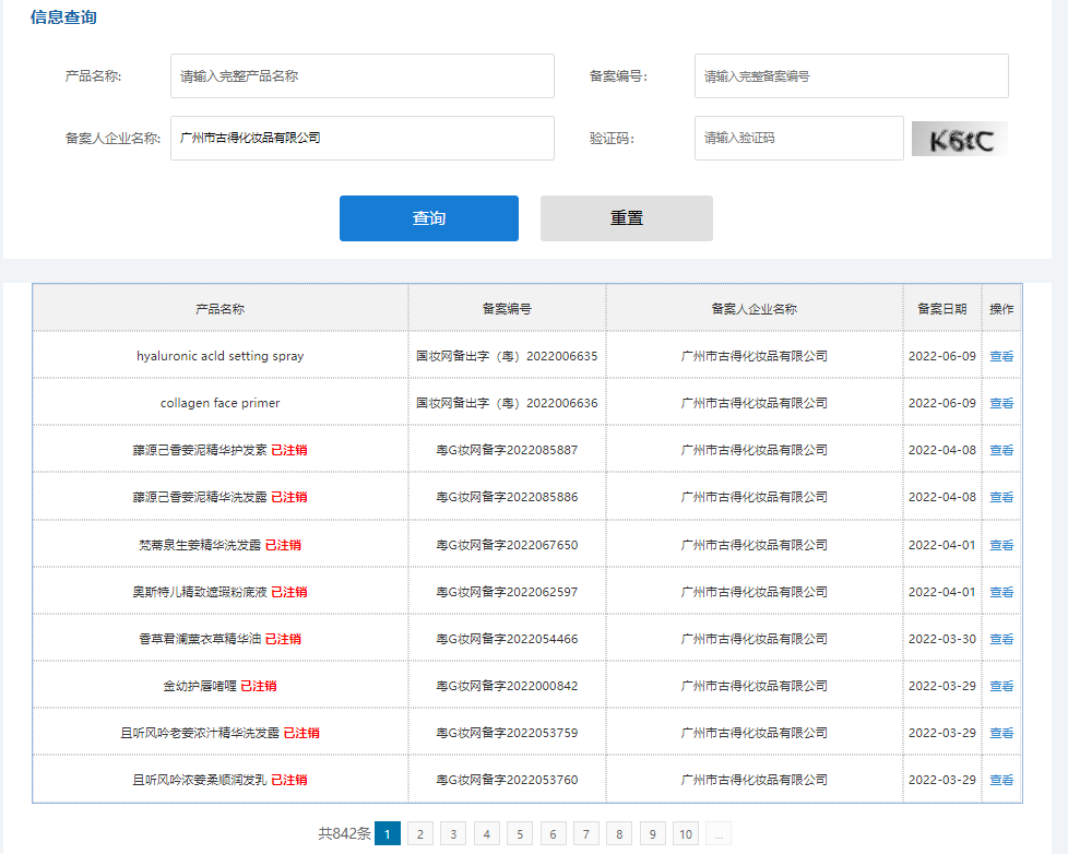 据青眼进一步调查,目前在国家药监局普通化妆品备案信息平台上,广州古得旗下备案的3000多件普通化妆品,绝大部分均已注销,其中就包含了上述涉案的三款产品。另外,在天猫、京东等电商平台上,也已无法检索到相关产品。