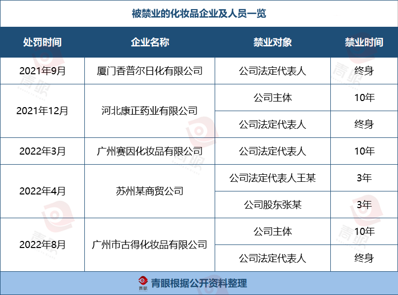 据青眼不完全统计,自去年9月底至今接近一年时间,化妆品行业已开出至少8张“禁业令”。