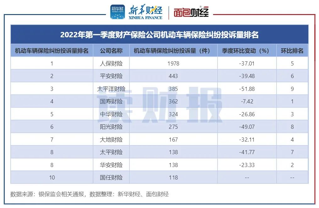财险投诉总量:人保总量高,平安降幅大,中华财险增速快
