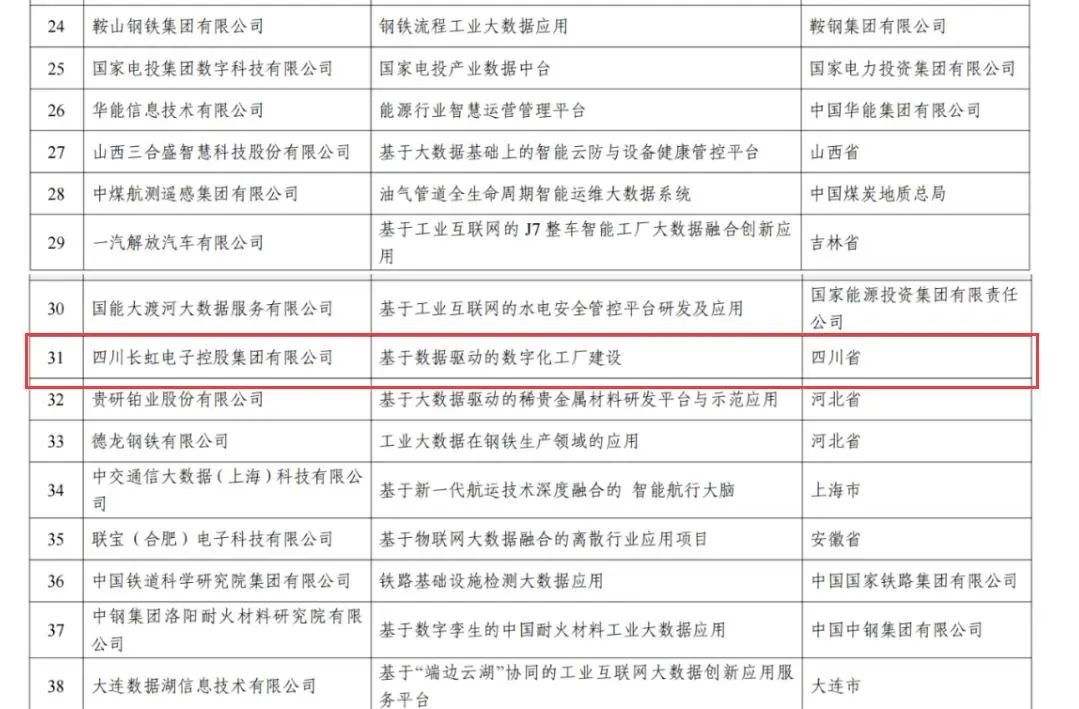 与此同时,国家工业和信息化部公示了2022年度智能制造标准应用试点项目名单,四川长虹电器股份有限公司、四川长虹智能制造技术有限公司、四川虹信软件股份有限公司联合申报的《彩电行业智能工厂标准应用试点》项目成功入选。