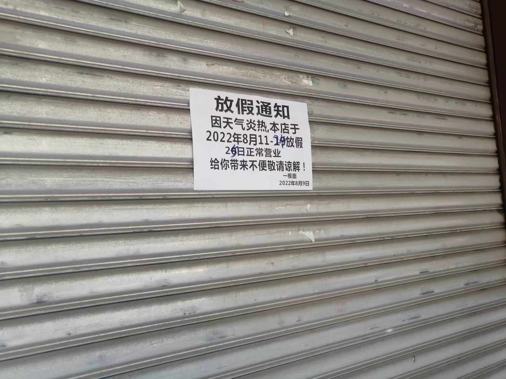 自从限电以后,我们店里只让开一个照明灯,空调、电扇都不让开,厨房的温度更高,师傅们的汗滴都大颗大颗地往下掉,非常辛苦。堂食的人几乎没有,只有依靠外卖订单。这几天我们下午6点左右就打烊,所以总体流水收入可能要少一半以上。平时,我们都是工作到晚上十点以后才下班的。其他的商户,很多晚上也都被迫关门了。
