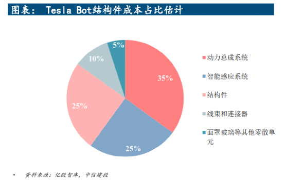 若参考亿欧及中信建投对特斯拉人形机器人的成本估测,包括电芯、热管理、电机、电控与减速器等在内的电池系统和电驱系统,占总成本的35%左右。