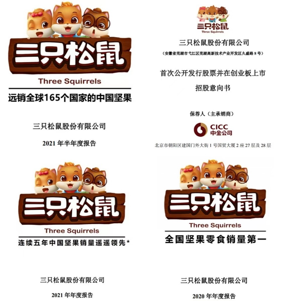按照前瞻产业研究院的数据,2019-2021年,三只松鼠仅在2020年占据中国混合坚果行业市场份额第一,因此,所谓“连续五年中国坚果销量遥遥领先”的说法,实际上是在打擦边球,难免让人质疑三只松鼠涉嫌“虚假宣传”。