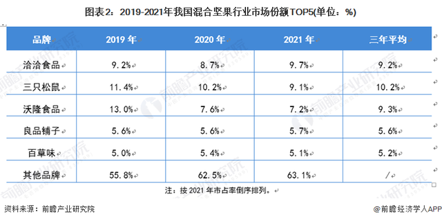 业内人士表示,前面两句就不提了,目前这句口号恐怕容易引起争议,有涉嫌虚假宣传之嫌。所谓“连续五年中国销量遥遥领先”,实际上包含着自2016-2021或2017-2022年国内坚果销量第一的意思。而目前能看到或经常被人引用的前瞻产业研究院的数据,似乎与这个说法相冲突。在前不久发布的青岛沃隆食品公司的招股书上,对近几年国内坚果品牌市占率的数据,引用的就是这家研究机构的数据,因此,其可信度还是得到业内认可的。