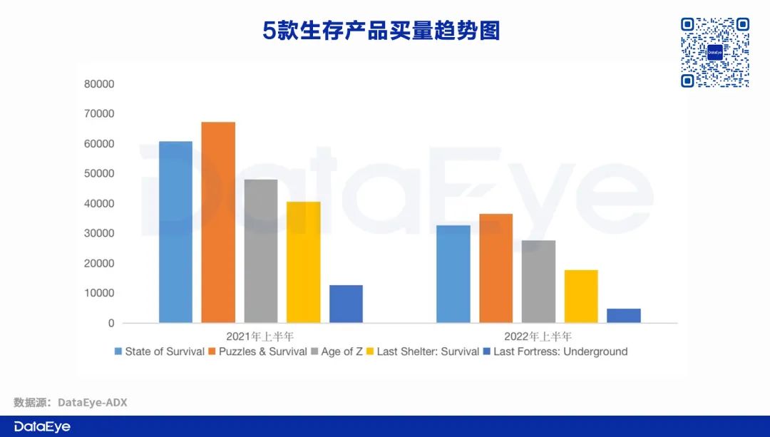 然而今年上半年与去年同比相比,五款生存类产品不约而同的大幅度缩减了素材投放量。其中,《Last Fortress: Underground》降幅达到了62%。