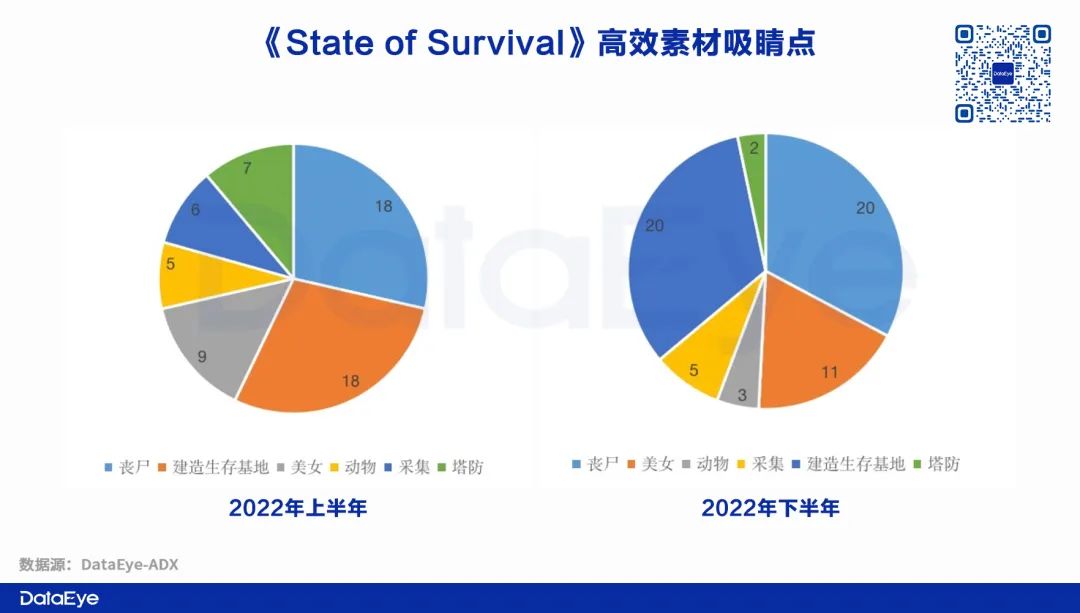这表明,《State of Survival》用写实类画风素材能吸引到的用户或许已经触碰到了天花板,目前素材往年轻化用户拓展,同时,在多年的素材创作上,找到了用户对“建造生存基地”这一元素特别感兴趣,今年素材内容的创作也多是从这方面做拓展。