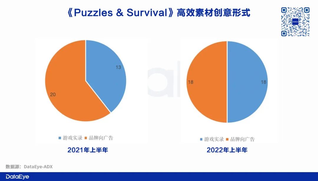 在创意形式的选择上,2021年《Puzzles &Survival》多采用品牌向广告+类游戏实录的组合拳,开头通过一段高渲染的动画短片吸引玩家观看,后续则通过展现游戏体验的方式强化玩家的记忆点。